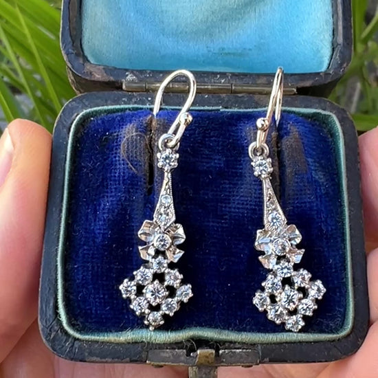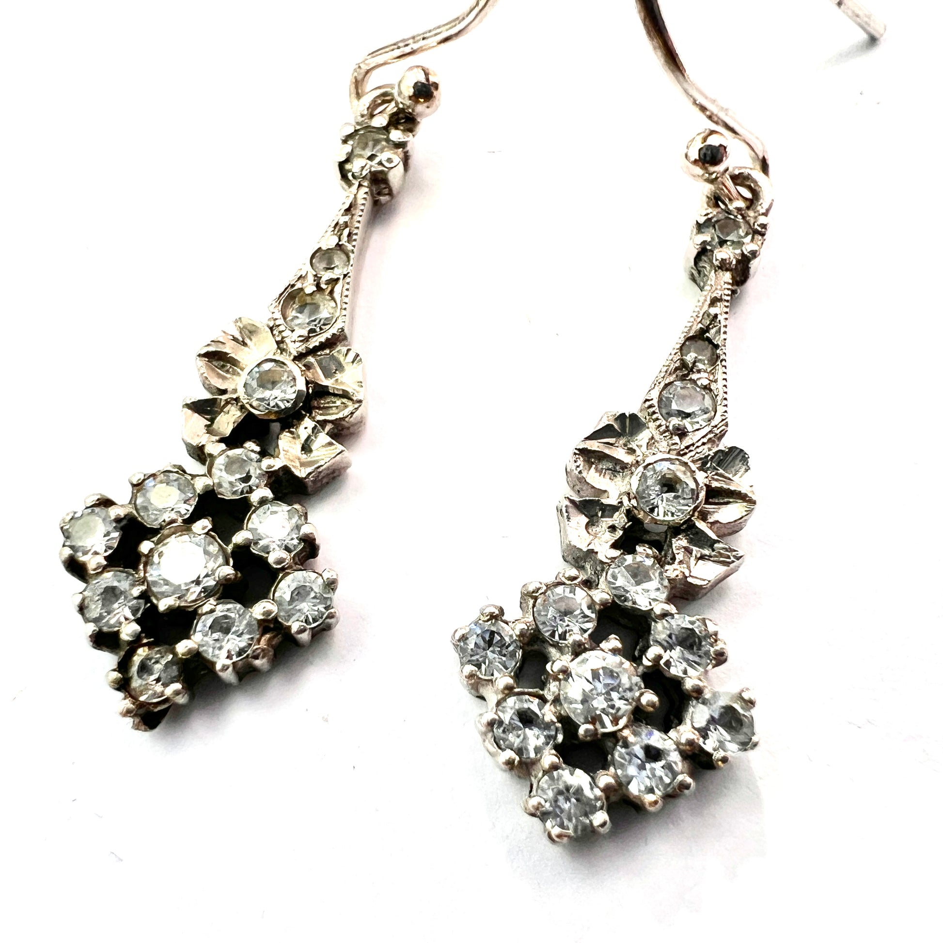 Pretty little antique earrings studded with extremely sparkly white pastes and tied with a dainty silver bow.