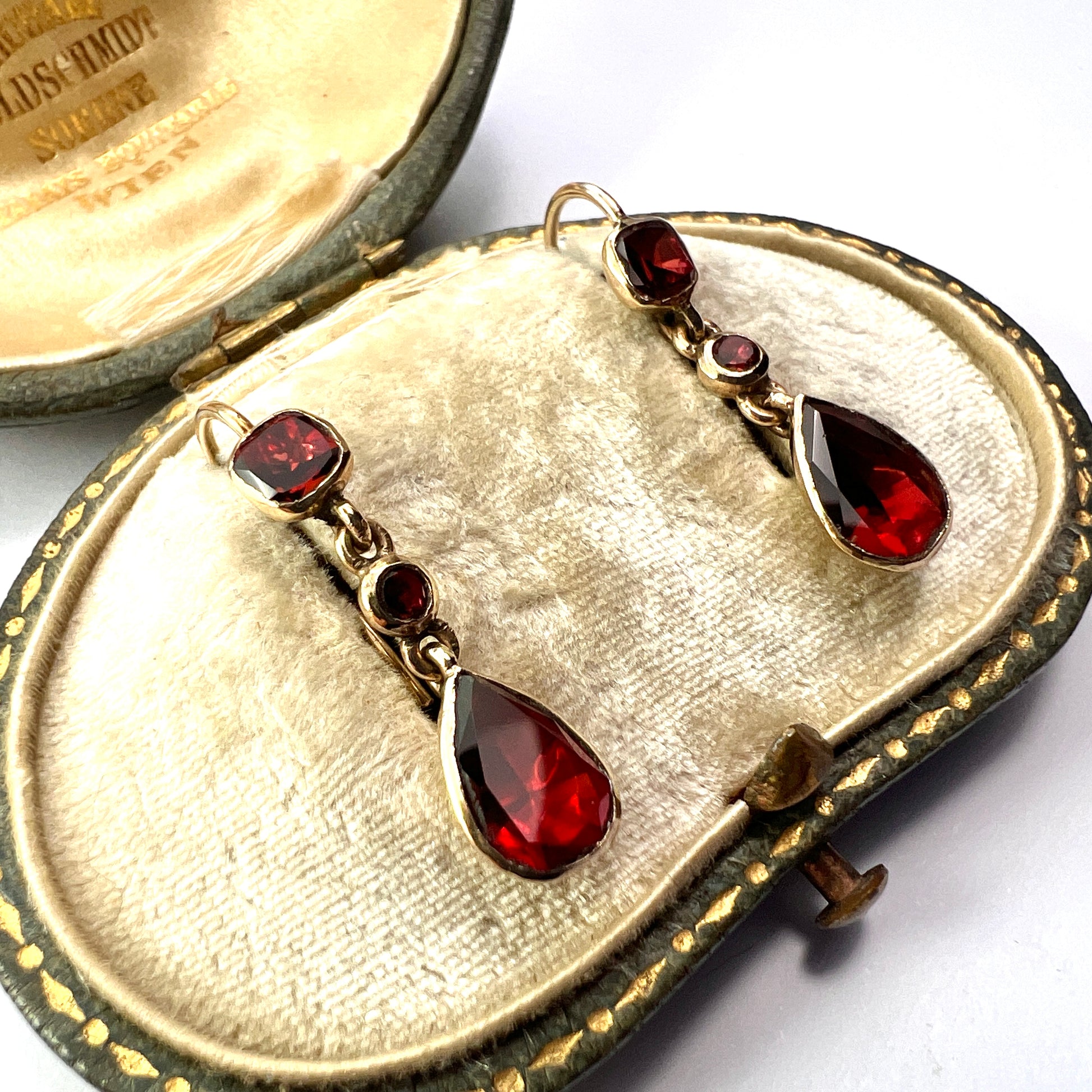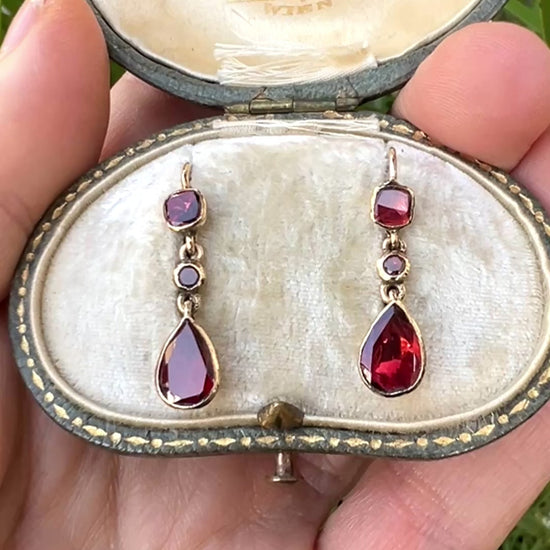 Georgian Garnet Teardrop 9CT Gold Earrings