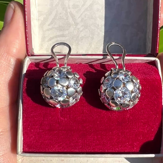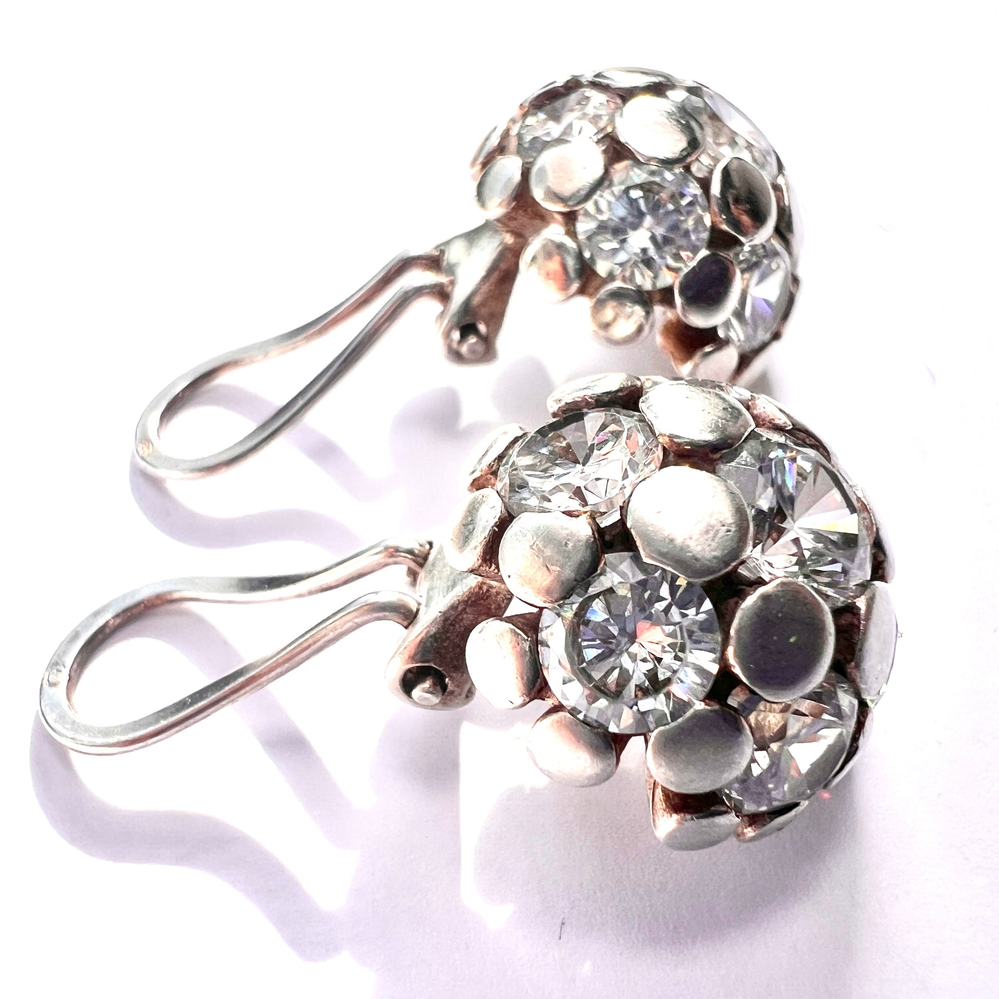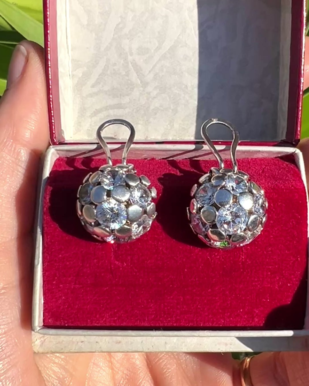 Beautiful retro dome-shaped earrings in solid silver with fantastically sparkly white crystals.