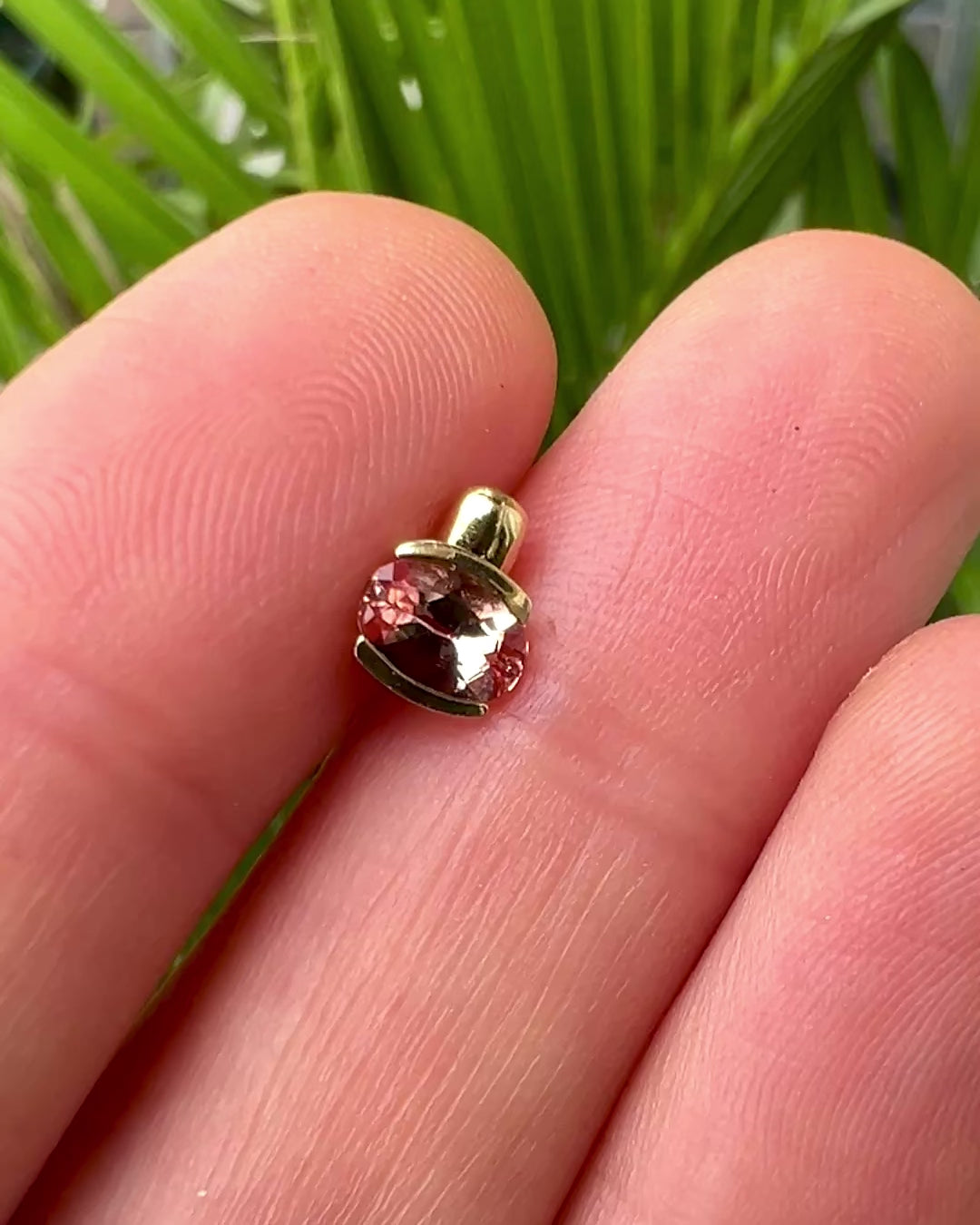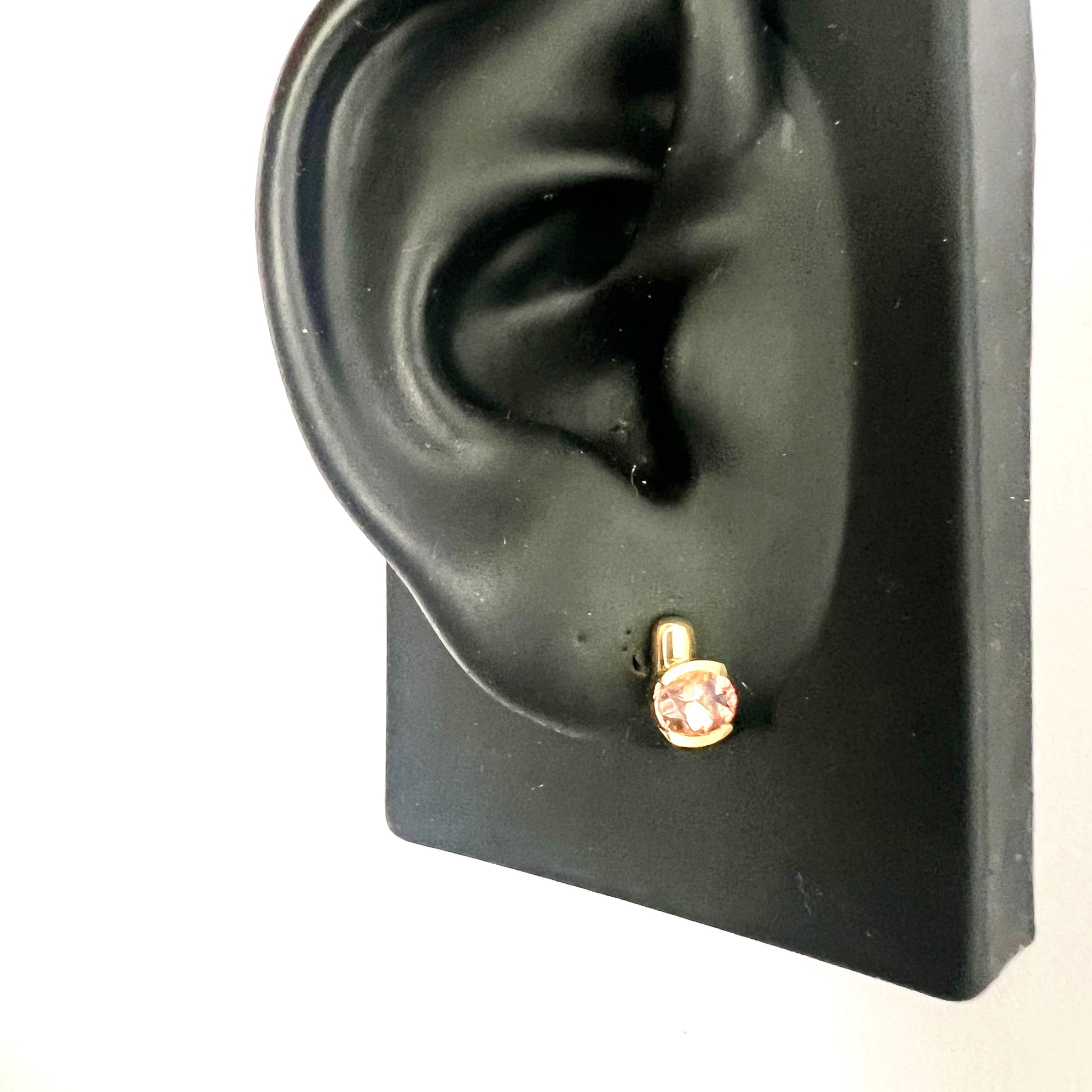 A solid 18-carat gold stud set with a pretty pink topaz. Please note this is a single earring.