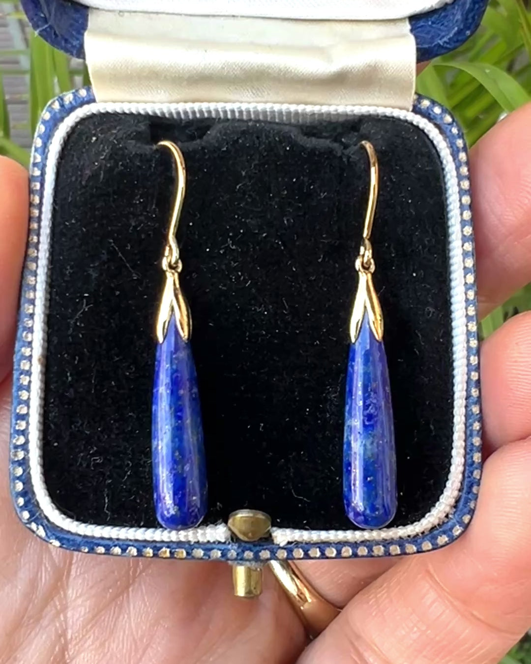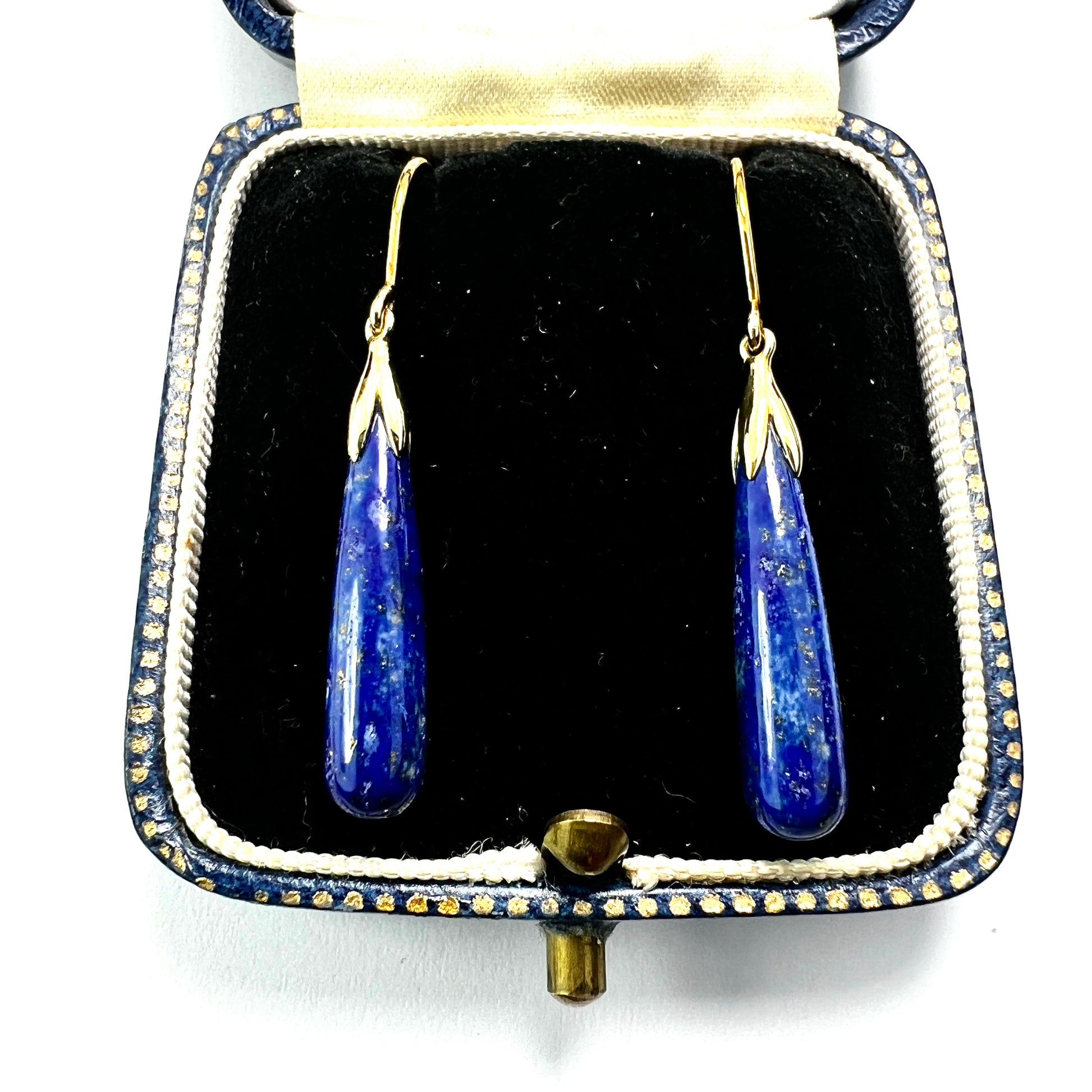 Vintage 9CT Gold Lapis Lazuli Teardrop Earrings