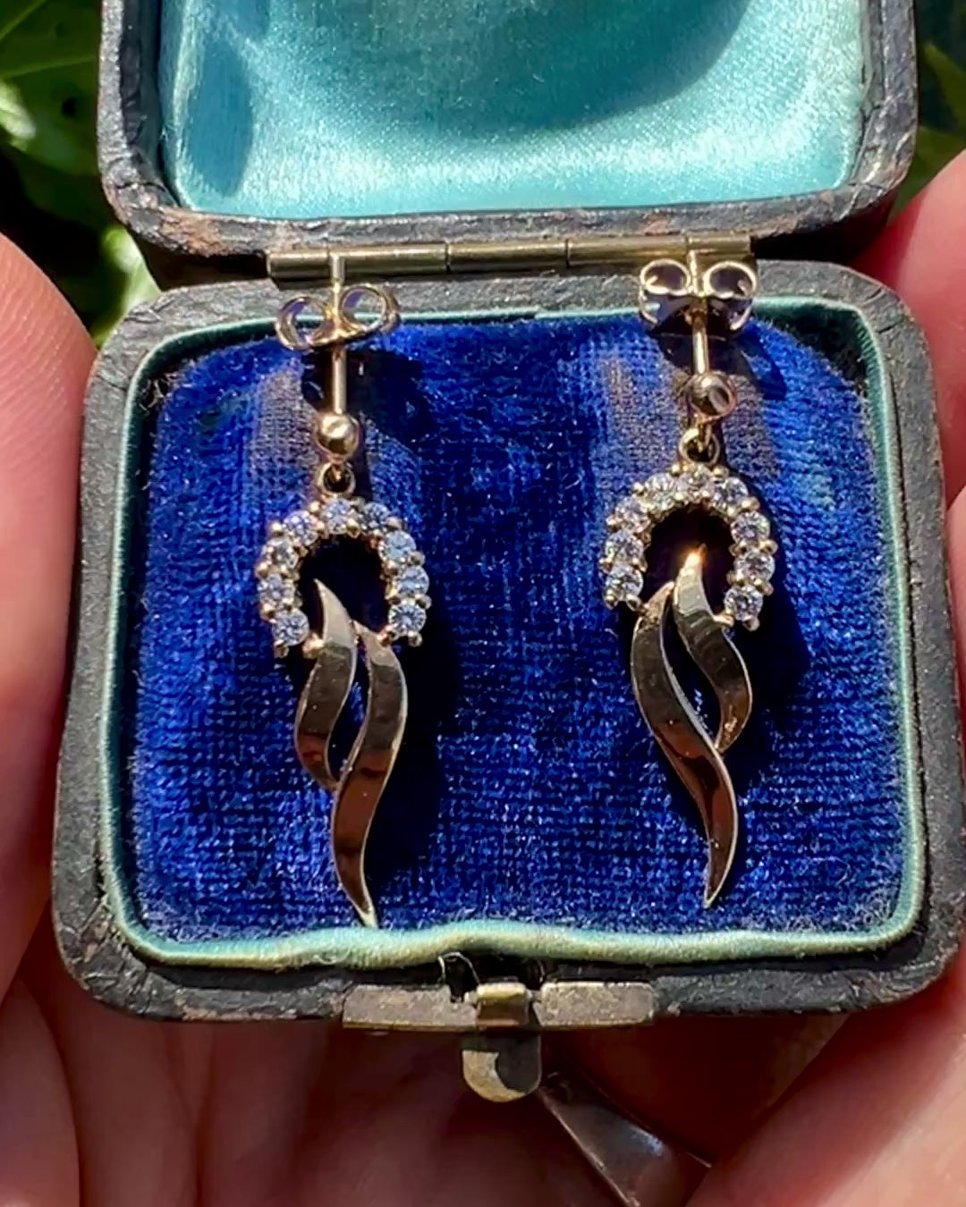 • Hallmarks/stamps: The earrings are unmarked but test as nine-carat (375) gold. The butterflies are stamped 9ct.